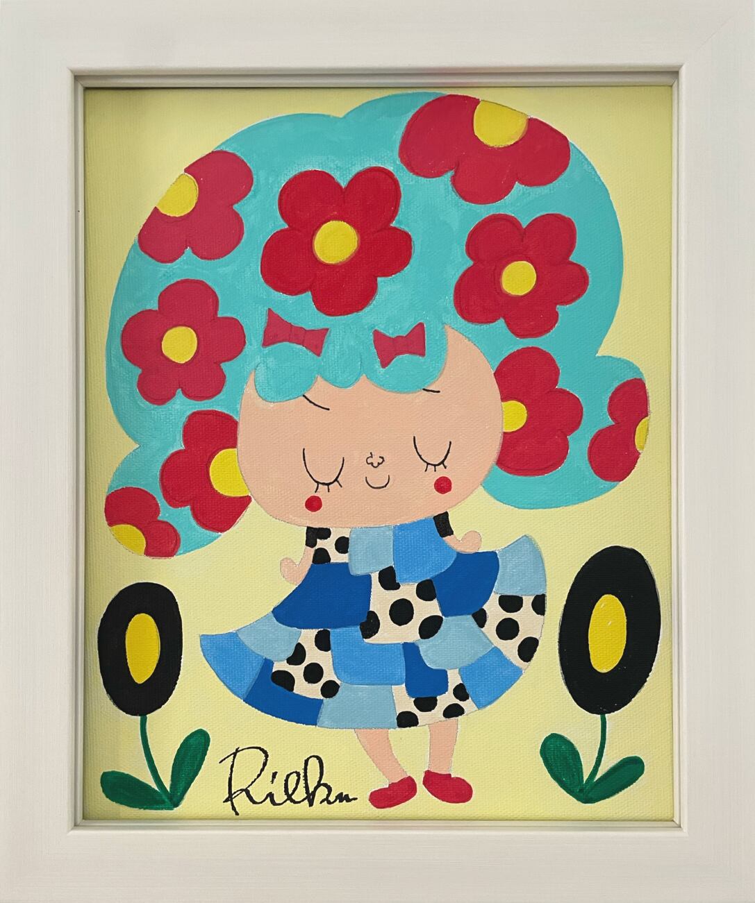 表にはriekimのサイン、額の裏面には完成日を入れさせて頂きます。