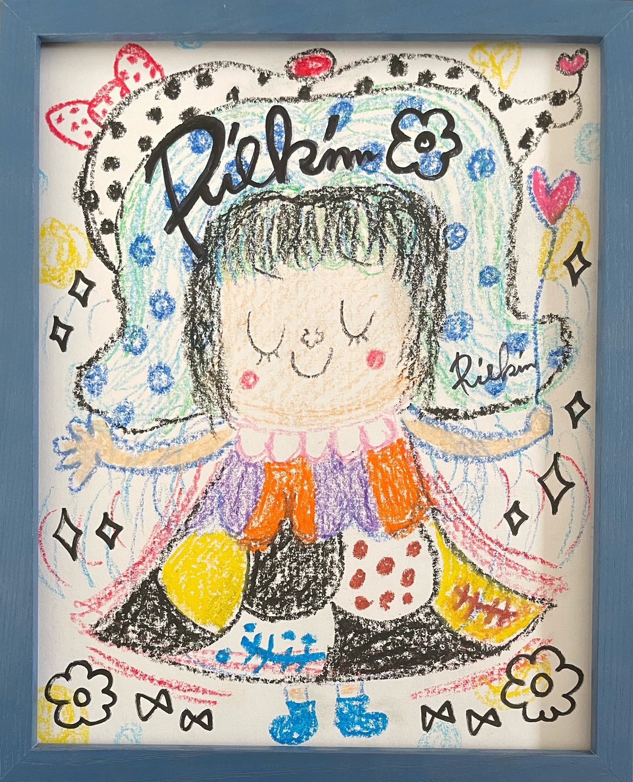 表にはriekimのサイン、額の裏面には完成日を入れさせて頂きます。